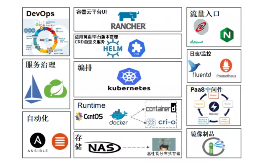 ?分層架構(gòu)Kubernetes為核心組件的PaaS平臺,整合EFK,Prometheus,Harbor等附加組件,PaaS服務(wù)分為三個平面,分別為管理平面、控制平面、計(jì)算平面。