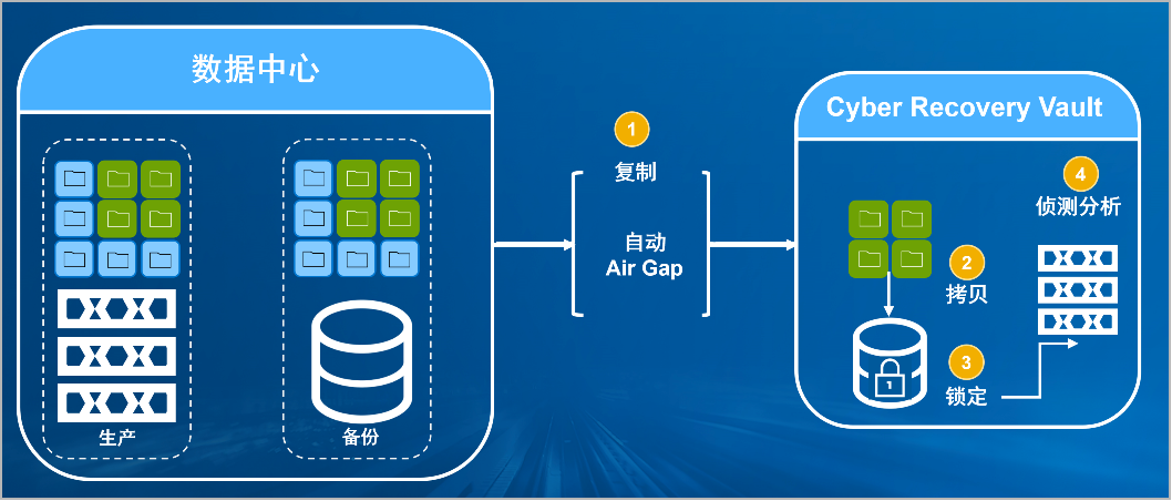 leyu.樂魚防勒索病毒方案將生產(chǎn)中心備份數(shù)據(jù)復制到Vault區(qū),復制后網(wǎng)絡自動斷開實現(xiàn)彈性隔離。Vault區(qū)的數(shù)據(jù)快速拷貝,并對拷貝版本加鎖(在鎖定期數(shù)據(jù)不允許刪除和修改)。Vault沙箱內(nèi)對拷貝版本進行掃描分析,驗證數(shù)據(jù)是否完好。